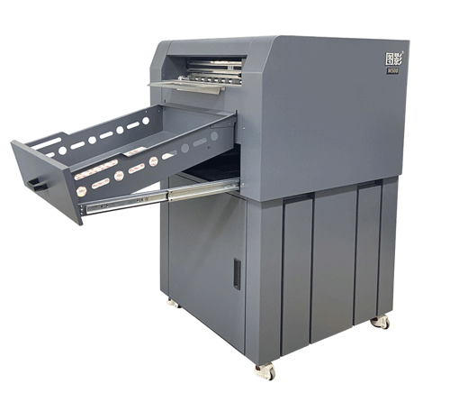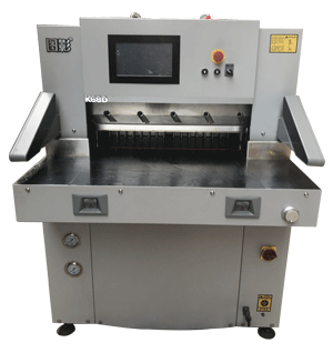 將闖齊的印刷頁或紙張放在工作臺上,依據所要求的幅面大小,移動推紙器的前后方位,使印刷頁邊緊靠推紙器的前表面,在作業臺上定位。在裁切組織的拖動下,壓紙器提前下降,將印刷頁或紙張壓平壓實,裁切刀片下降,初步裁切。